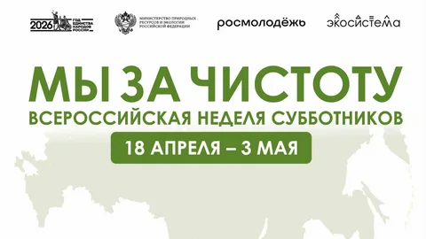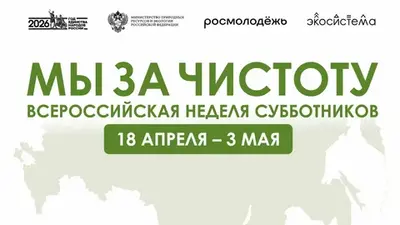 Всероссийская неделя субботников «Мы за чистоту» проходит с 18 апреля по 3 мая 2026 года. Акция приурочена к Году единства народов России и организована Федеральным агентством по делам молодёжи совместно с Всероссийским экологическим общественным движением «Экосистема».